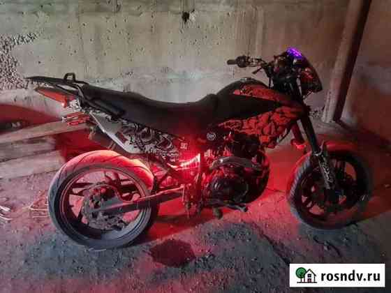Нужно поставить задний тормаз, нет переднего крыла и спидометор не показывает скорость.ПЛЮСЫ заводится с кнопки с пол нажатия,цпг новое, едит 120-130, стоят мотарды, стоит подсветка под двигателем краснная,техническое состояние отличное.ШЛЕМ В ПОДАРОК Состояние: б/у.мотоциклы и мототехника